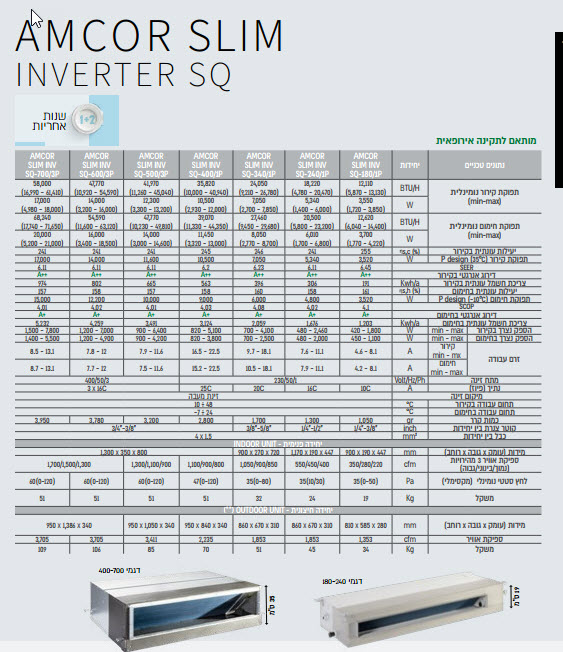 תפוקת קירור, 24050 דרוג אנרגטי, A++ חד פאזי