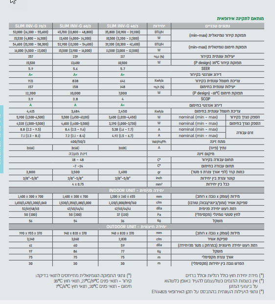 תפוקת קירור 35800 BTU דירוג אנרגטי +A